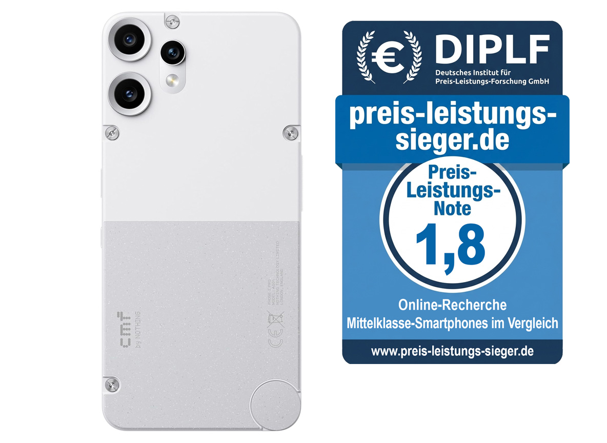 Begründung: Das CMF Phone 2 Pro bietet das wirtschaftlichste Paket unter 300 Euro. Dass man ein Tele-Objektiv und ein Top-Display in dieser Preisklasse findet, ist eine Sensation. Einzig der schwache IP54-Schutz und der mäßige Lautsprecher verhindern ein "Sehr Gut".
